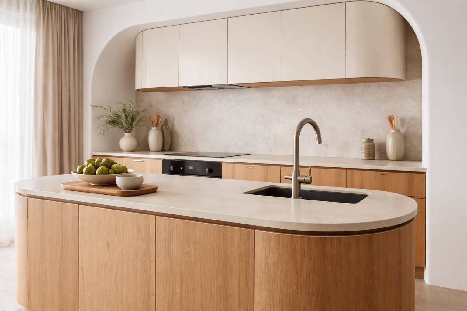 Projektując kuchnię lub meble z łagodnymi liniami, trzeba zachować równowagę między płynną formą a funkcjonalnością. Oto kilka wskazówek:
